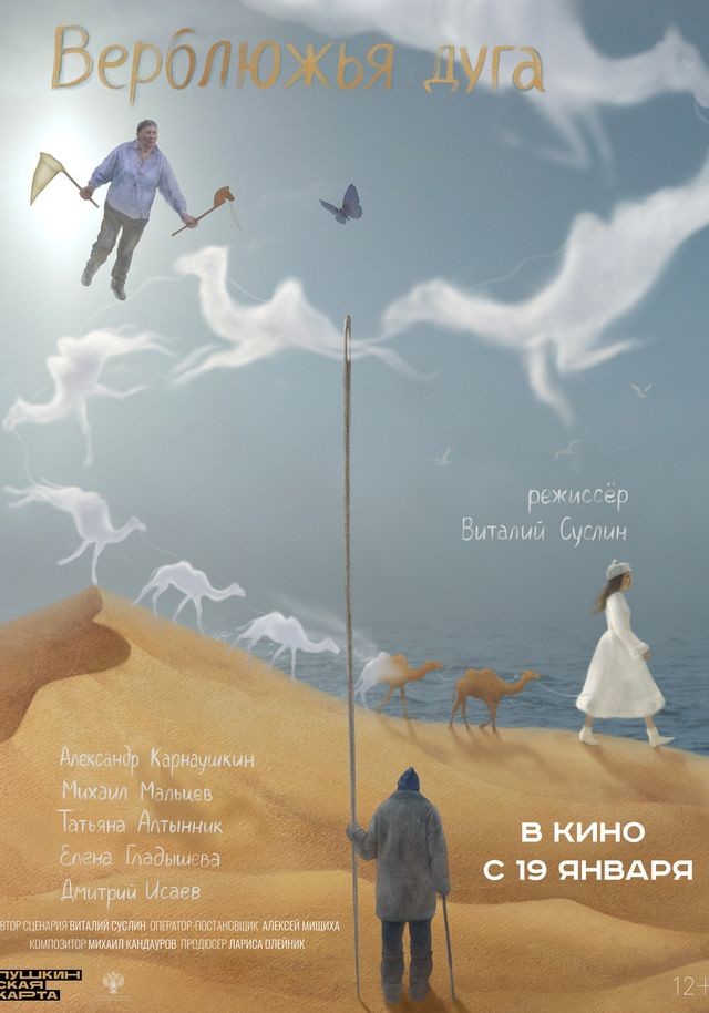 Фильм «Верблюжья дуга» – шестой полный метр режиссёра Виталия Суслина («Дефиле», «Голова. Два уха», «Седьмой пробег по контуру Земного шара», «Папье-Маше», «Рапана»), участник основного конкурса 44-го Московского международного кинофестиваля.